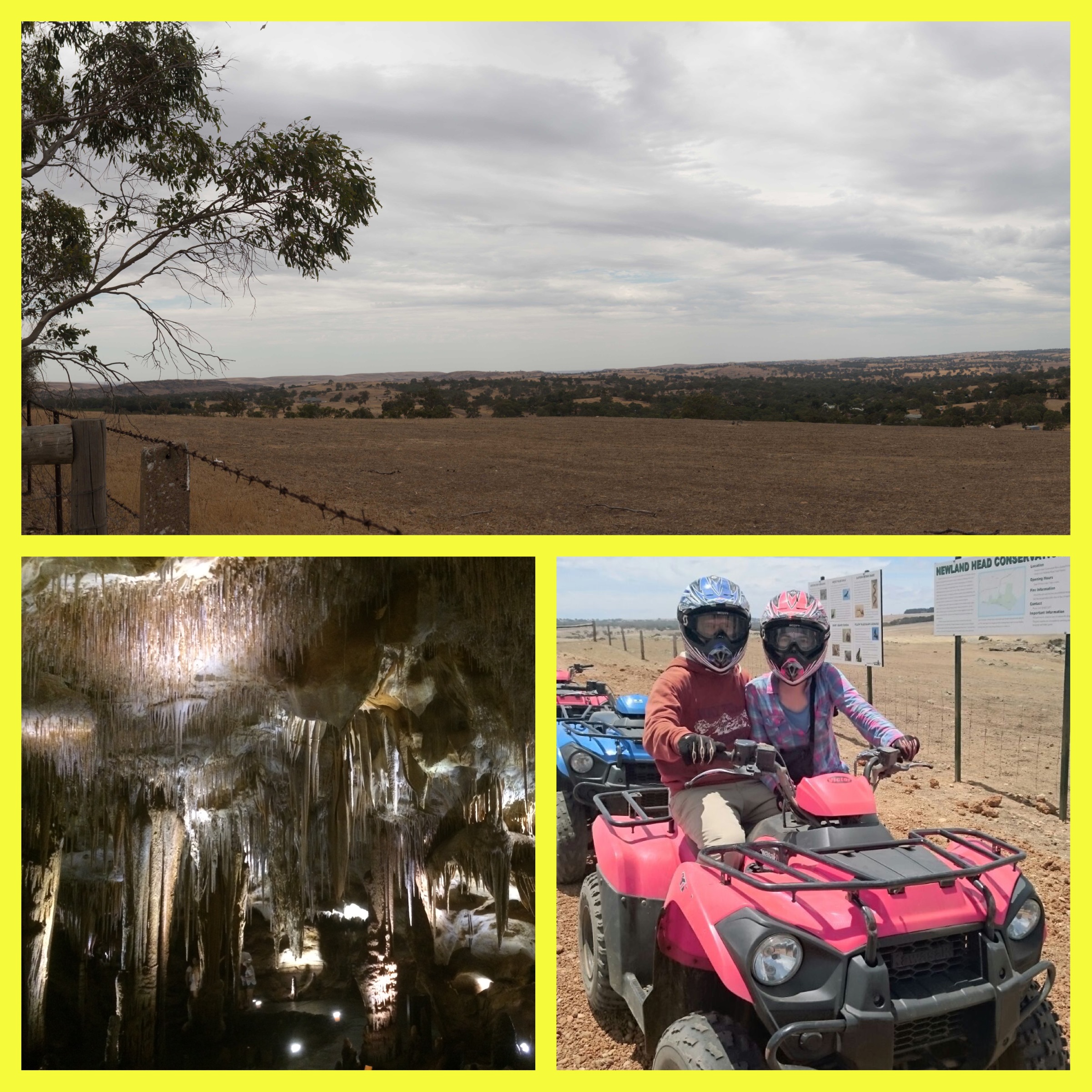 After a quad experience in Naxos (a greek island), I was willing to do it again during our stay in Australia. Contrasting to the Greece Island, to drive a quad on a normal road was not allowed. So, the only way to “ride” a quad was to book a guided tour. Next to Victor Harbor was a farm which offered this kind of expeditions. We subscribed us for the scenic trip. The guides (there were two for about seven people) explained everything very carefully. To drive a quad was quite easy – but this feeling could be dangerous. Quads are the most risky vehicles on farms. Therefore we first had to go on an exercise track. After ten minutes, we were familiar with the quad and had no problems on the further journey.